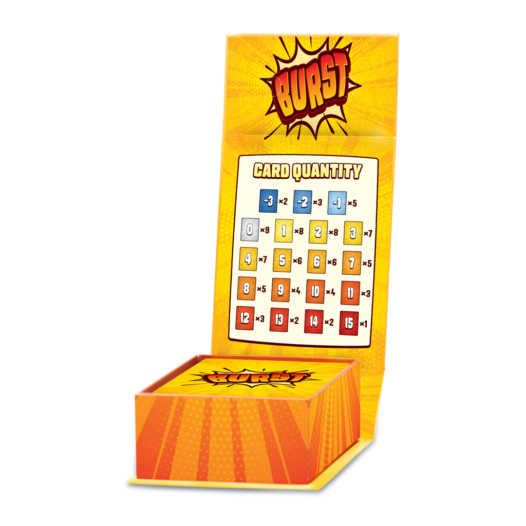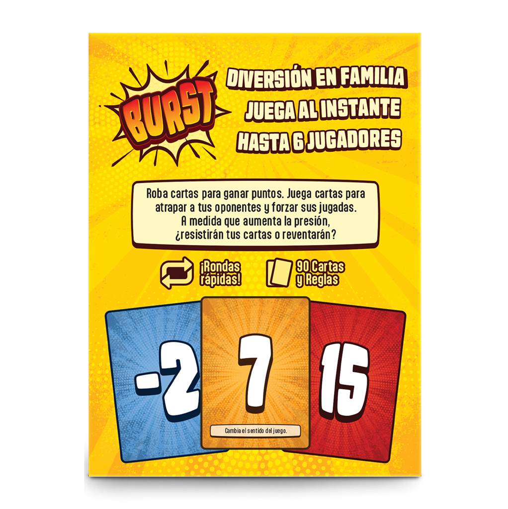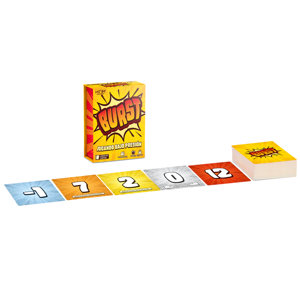 Burst es un juego de cartas frenético y adictivo donde la velocidad y los reflejos son clave para la victoria. Los jugadores deben ser los más rápidos en deshacerse de sus cartas siguiendo patrones de color y número.