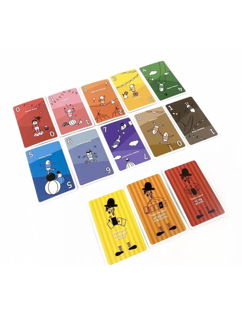 En Circus Flohcati, deberás decidir cuándo quedarte con las cartas disponibles o arriesgarte a esperar mejores opciones. Colecciona tríos de artistas del mismo tipo, reúne una carta de cada una de las diez profesiones circenses, o consigue la valiosa carta de Flohcati para ganar puntos extra.
