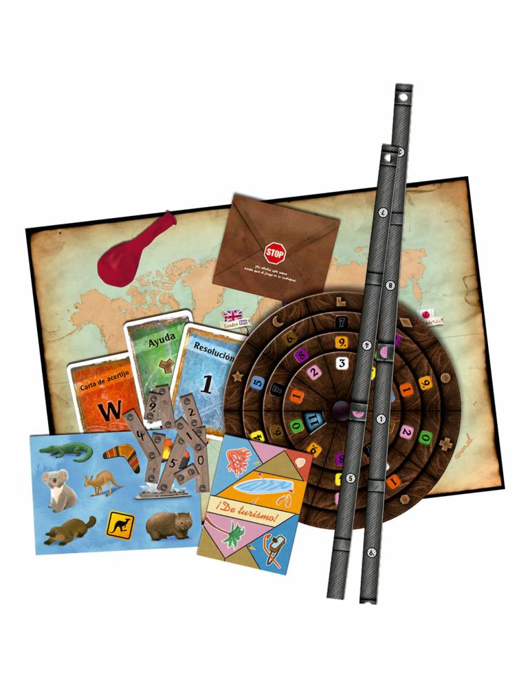 Contenido: Cartas, materiales de enigmas, disco decodificador, libro de aventuras y reglas.