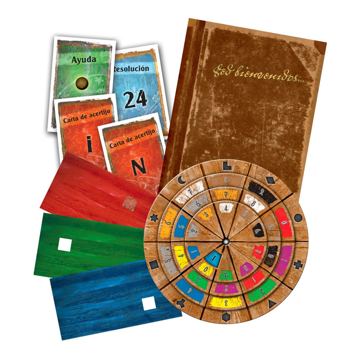 Contenido de la caja: Libro de acertijos, disco decodificador, cartas de enigmas, materiales especiales y todo lo necesario para tu aventura de escape.