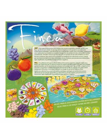 En Finca, los jugadores mueven a sus trabajadores por una rueda de molino para recolectar diferentes tipos de frutas: naranjas, limones, higos, almendras, aceitunas y uvas. El objetivo es cumplir los pedidos de los mercados de la isla y conseguir la mayor cantidad de puntos. Con una mecánica de movimiento única basada en la rueda del molino, cada decisión cuenta.