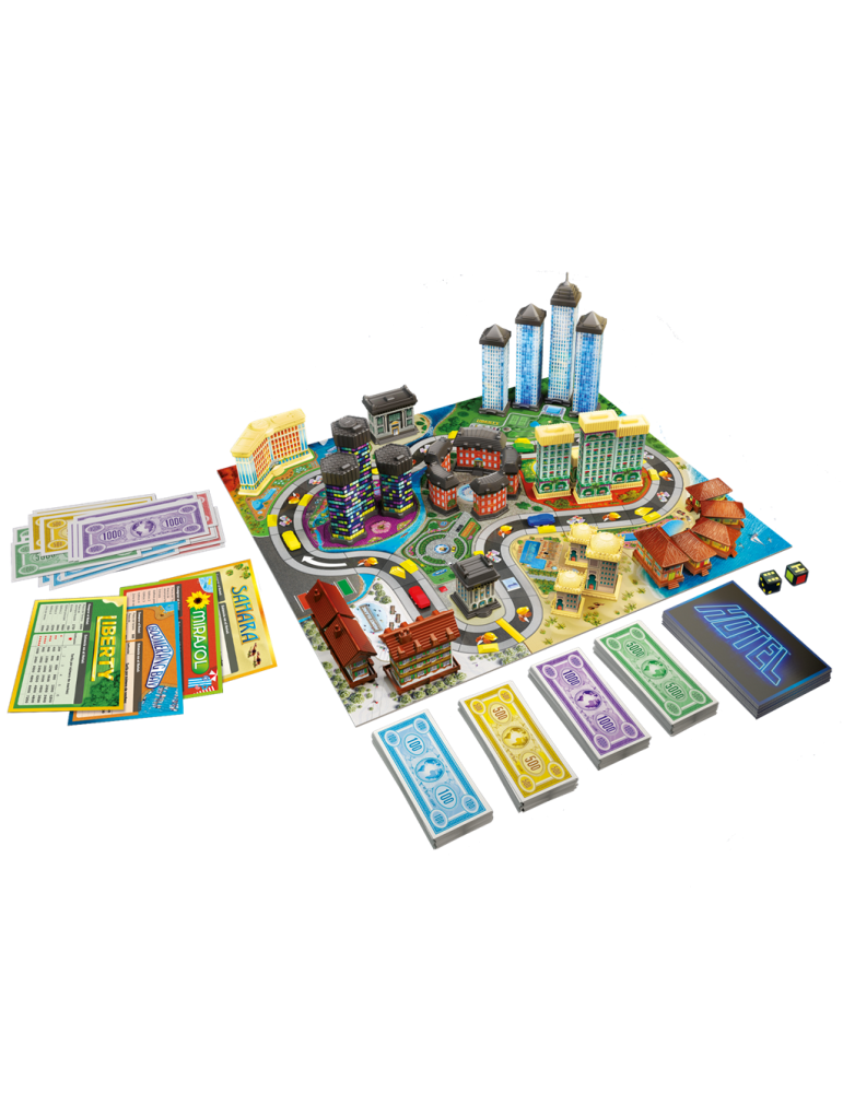Hotel es un juego de mesa estratégico donde los jugadores compiten por construir el hotel más prestigioso y rentable. Gestiona tu establecimiento, atiende a tus huéspedes y toma decisiones inteligentes para superar a tus rivales.