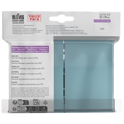 El Just Sleeves Standard European Value Pack incluye 150 fundas protectoras de alta calidad diseñadas específicamente para cartas de tamaño estándar europeo (59x92mm). Perfectas para proteger tus juegos de mesa y cartas coleccionables favoritos.