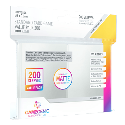 Las Matte Standard Card Game Sleeves de Gamegenic ofrecen protección de calidad superior con acabado mate que elimina reflejos molestos durante el juego. Con medidas de 66x91mm, estas fundas son perfectas para juegos de cartas estándar y TCG como Magic: The Gathering, Pokémon, Lorcana, Star Wars Unlimited y One Piece.