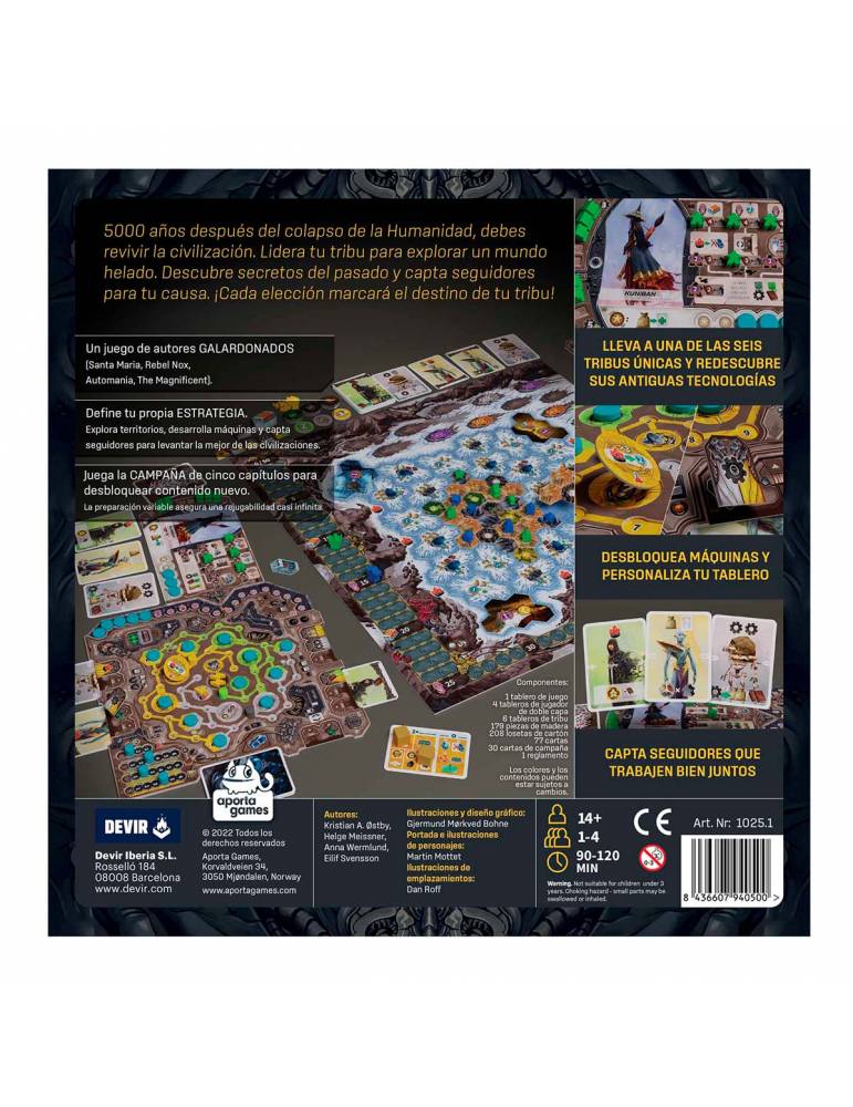 Revive es un juego de mesa de estrategia media-alta que combina gestión de recursos, construcción de motor y exploración en un mundo post-apocalíptico fascinante. Los jugadores lideran tribus que emergen de refugios subterráneos para reconstruir la civilización, explorar territorios helados, desarrollar tecnologías y competir por el control de los recursos más valiosos en un planeta transformado.