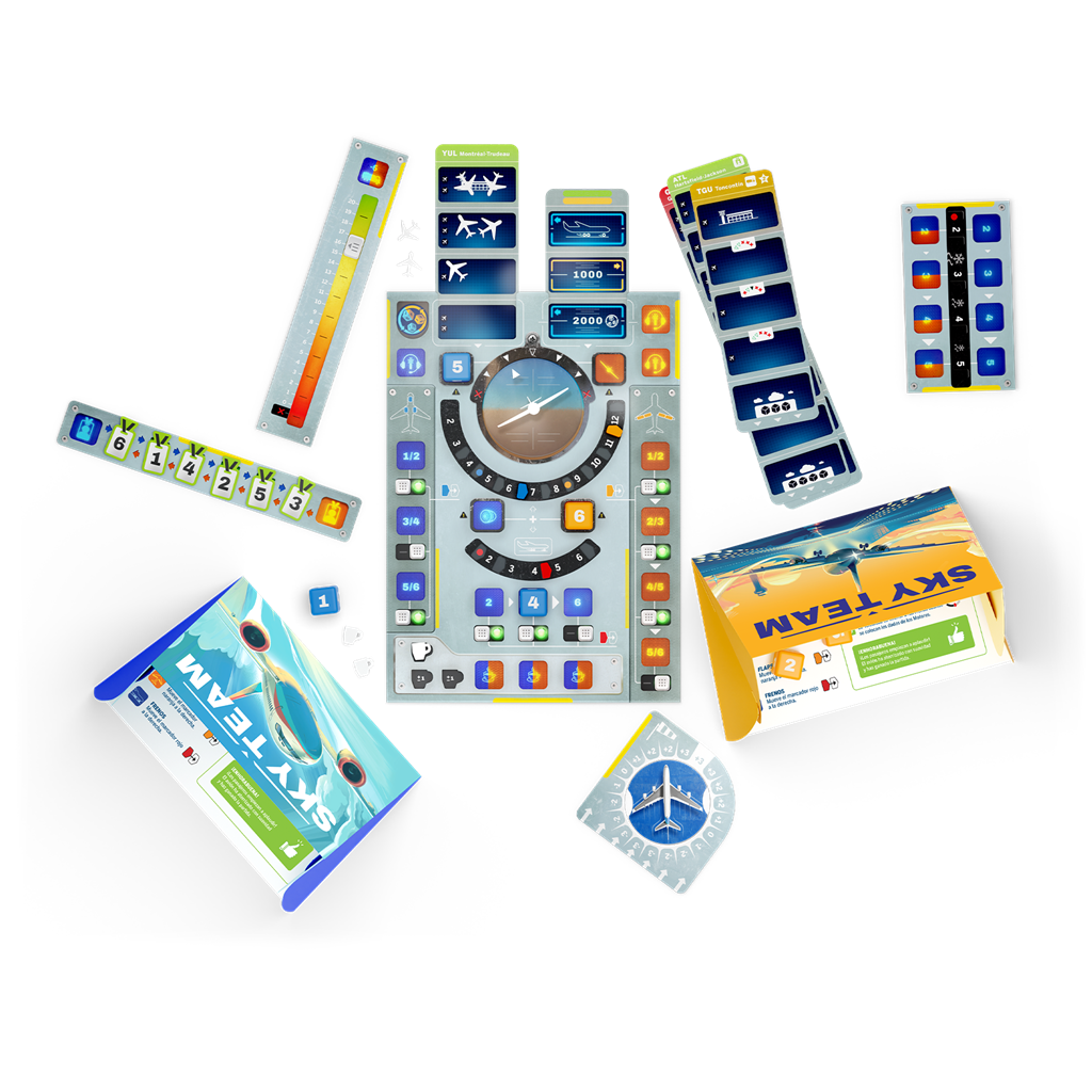 En este innovador juego de dados cooperativo, la comunicación es limitada y cada decisión cuenta. El piloto controla el eje y los motores, mientras que el copiloto gestiona los flaps, el tren de aterrizaje y la radio. Juntos deberéis coordinaros perfectamente para superar condiciones meteorológicas adversas, gestionar el combustible y evitar obstáculos.